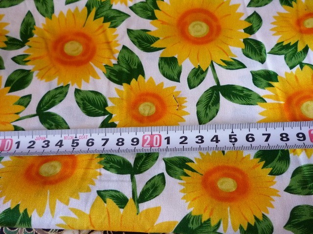 新品】100*50☆オフ白・ひまわり・花柄の・ハギレ・生地・布☆0202-138