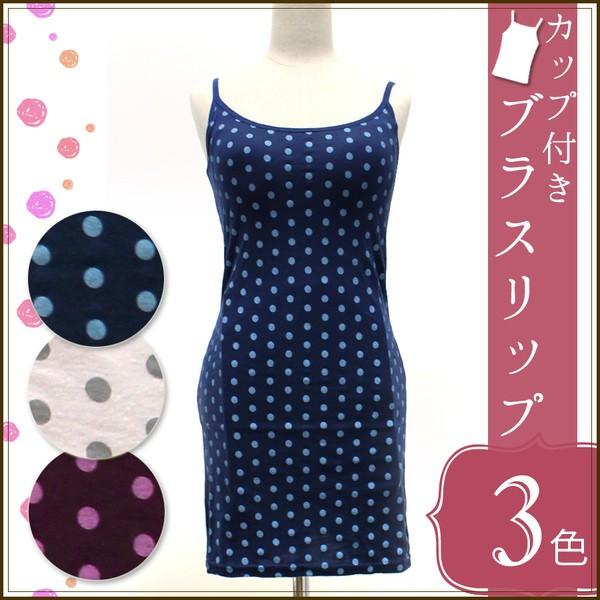 ブラスリップ 浴衣下 浴衣用 下着 カップ付 ブラ付スリップ キャミソール ブラジャー 水玉 ドット 3色 部屋着 ブラトップ 青 白 紫
